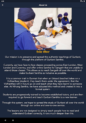 Приложение Nihung Santhia Gutka Sahihb содержит ежедневные сикхские молитвы, известные как Nitnem.Nihung Santhia - это организация, посвященная сохранению и распространению подлинных учений Sampardaee Guru Sahib через платформу Гурбани Сантии (правильное произношение и изучение Гурбани).