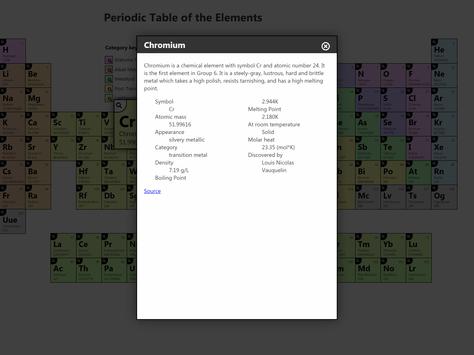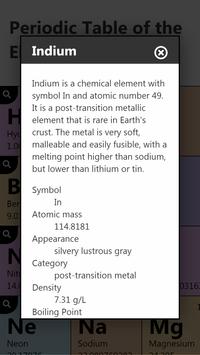 The periodic table, also known as the periodic table of elements, is a tabular display of the chemical elements, which are arranged by atomic number, electron configuration, and recurring chemical properties. The structure of the table shows periodic trends. The seven rows of the table, called periods, generally have metals on the left and non-metals on the right. The columns, called groups, contain elements with similar chemical behaviours. Six groups have accepted names as well as assigned numbers: for example, group 17 elements are the halogens; and group 18 are the noble gases. Also displayed are four simple rectangular areas or blocks associated with the filling of different atomic orbitals.