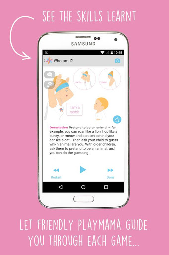 Tailored for a Mothers convenience, PlayMama gives you over 60 games based on your babies exact age, individual pace of development, place – indoor, outdoor, bath or sandpit and your babies' mood – Active, Quiet or Just for fun!