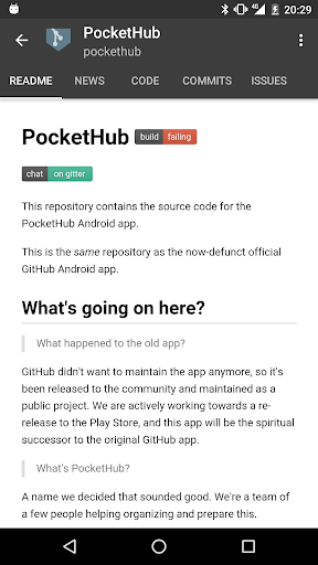 As GitHub stopped supporting the old app we took over the repo and are now working on bringing new features and design. You can find the code here https://github.com/pockethub/PocketHub