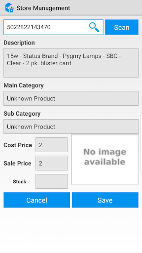 1.StockTake :- scan Or Search barcodes to get information for the product (Description, Main Cateogry, Sub Category, Cost Price, Sale Pice, Stock Quantity)
