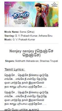 Tamil Songs Lyrics is an Lyrics app which contains lyrics for Tamil Movies. This app is an interesting informative app about Tamil Movie Songs and Tamil Film Industry.