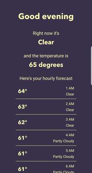 Whether is a modern, sleek, minimal weather app. It gives you only what you need to know -- a look at the current weather and changes over the next few hours.