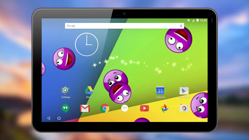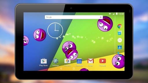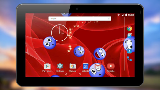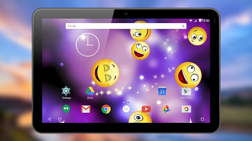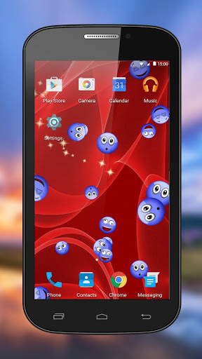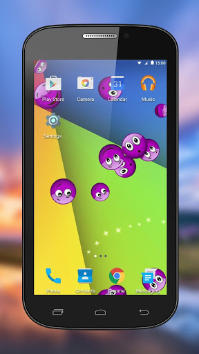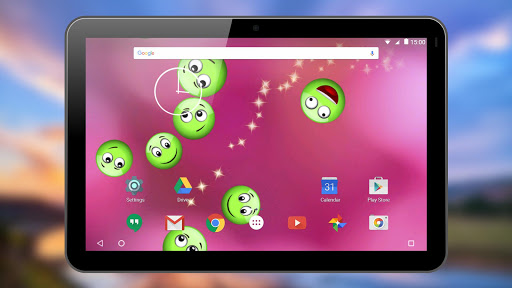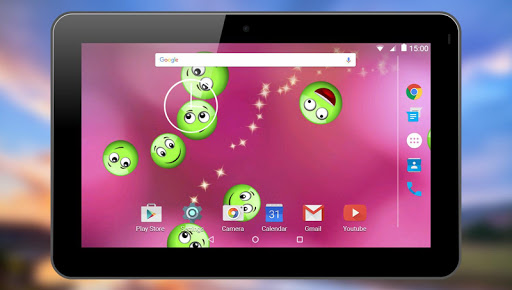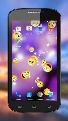При касании экрана смайлики будут убегать от ваших пальцев и вы увидите сияющие звездочки. Наслаждайтесь этими живыми обоями!