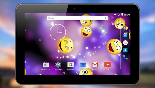 Яркие красочные обои меняются на вашем экране, чтобы радовать глаз милыми смайликами, летающими по экрану.