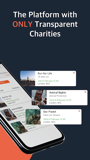 * Просмотр прозрачности благотворительных организаций, которые вы хотите пожертвовать. Дайте любую сумму на любой благотворительный характер в любое время