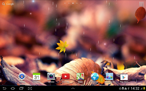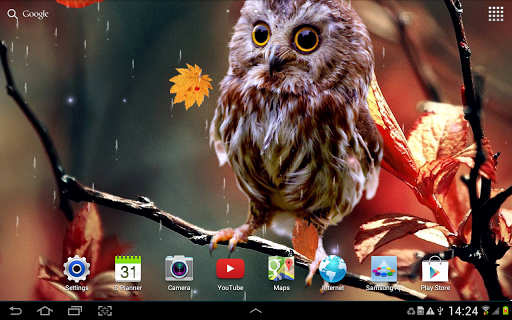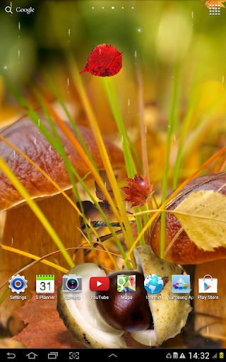Рабочий стол → Программы → Настройки → Экран → Обои → Главный экран и экран блокировки → Интерактивные обои → Осень Живые Обои