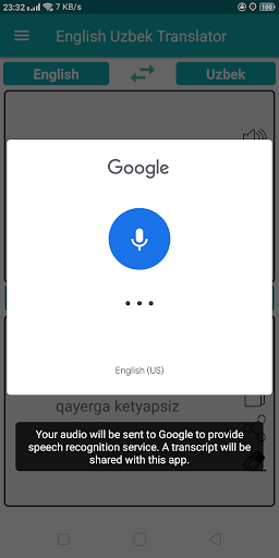 - Узбекский переводчик на английский переводчик для текста для речи любого языка, любое слово и предложение слова и предложение. (Узбекский английский перевод) - добавьте свое любимое слово и предложение в свой список любимых и доступа к нему в автономном режиме Также. (Английский узбекский переводчик)