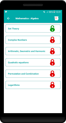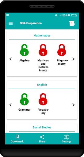 Это приложение для экзамена NDA разделено на пять разделов, таких как математика,