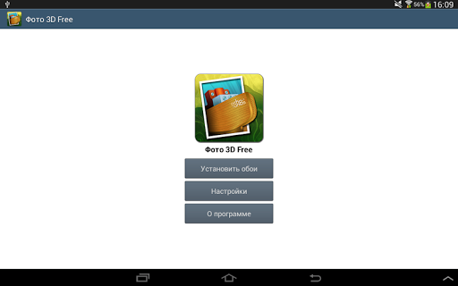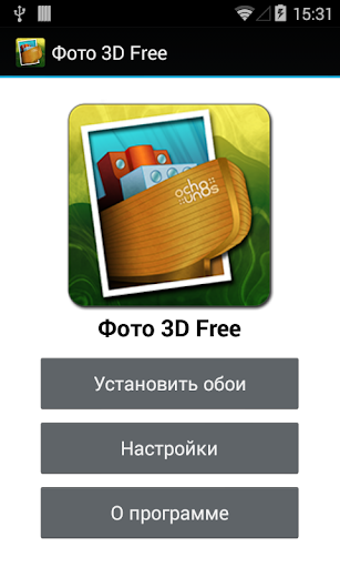 - Посмотрите на приложения в списке приложений, найти значок Фото 3D Free, откройте его, нажмите на Установить обои.