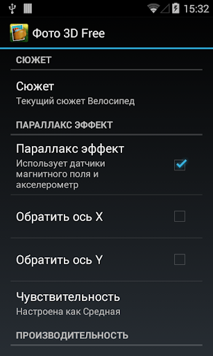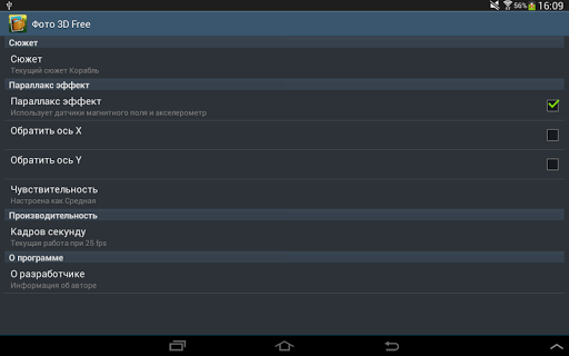 - Длинное нажатие на главном экране -> выбрать обои из меню -> Живые обои -> Фото 3D Free, или