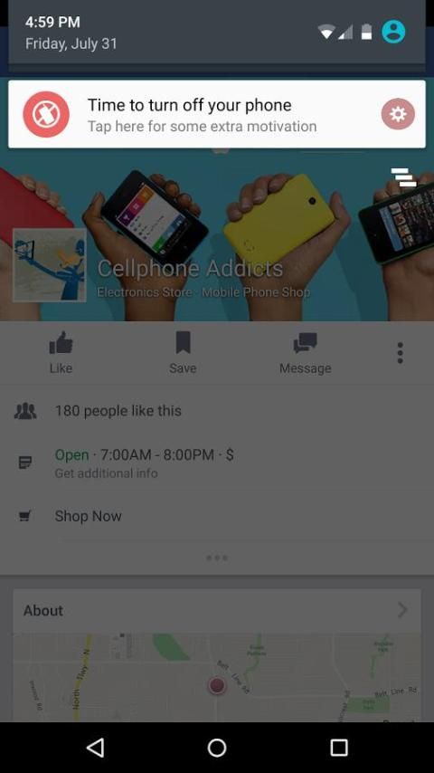 PhoneOff uses non-intrusive notifications to send you a gentle reminder that you have been using smartphone too long. If you require extra motivation, clicking on the notification will display a motivational quote and image that will surely inspire you to look away from the screen.