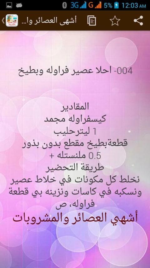 - يمكن اضافة وصفة عصير إلي المفضلة للرجوع إليها مرة آخري بسهولة
