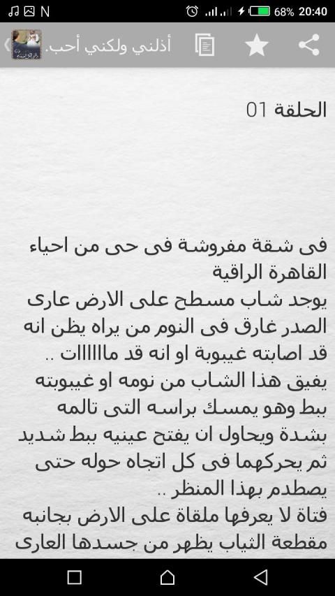 رواية ذلني ولكني أحببته تطبيق متميز عن باقي التطبيقات من حيت أنك كلما قرأت الرواية تتشوق وتتحمس لقراءتها كاملة