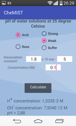 3.) pH calculator is designed for pH calculations of strong and weak acids (bases) and buffers. It takes into account hydronium ions from water autodissociation. The buffer pH is calculated using Henderson–Hasselbalch equation.