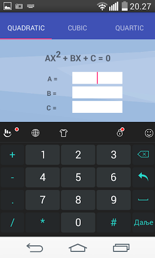 1.) Equation solver is a tool designed for calculating roots of three common types of polynomials. While it uses standard formulas for calculating square roots and cube roots, it uses Laguerre’s interpolation for calculating roots of quartic function (fourth degree polynomial function).