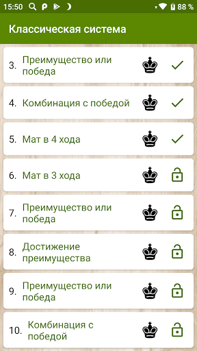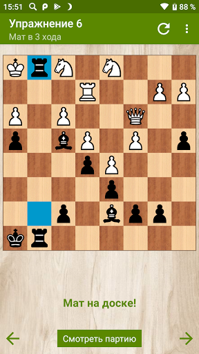 Бесплатная версия содержит 24 интересных головоломки на комбинации с победой, достижение преимущества и мат в несколько ходов.