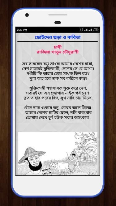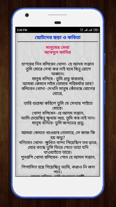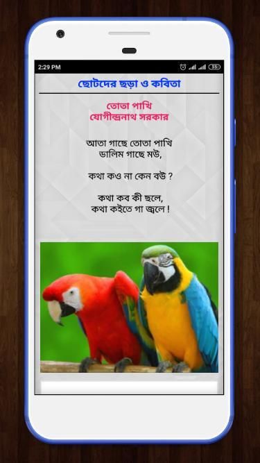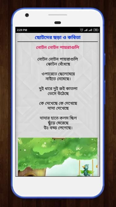 Choto kobita / bangla choto kobita is a offline based app where you will get choto der kobita and chotoder chora . bangla chotoder chora is a gift got your kids . We believe that you will like bangla mojar kobita . This children rhyme is free to download and always will be .