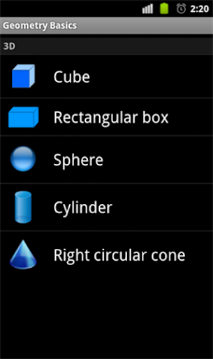 Visualize most known geometric shapes that are categorized as : 2D and 3D.