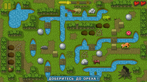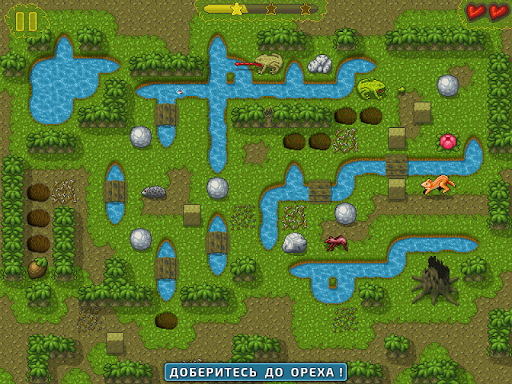 - Давите животных двигая от себя в лабиринте блоки и катая шарики по клеточкам. Собирайте орехи ими оставленные.