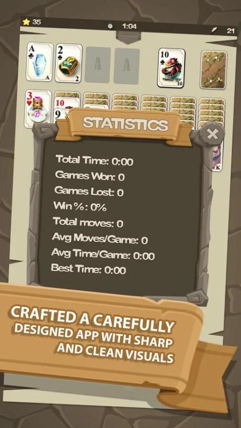 - Значок статистики отображает ваши успехи, включая общее время в игре, число выигранных/проигранных партий, число ходов, число ходов за игру, среднее время на игру, лучшее время и т. д.
