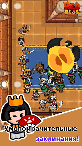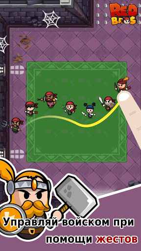 "Наконец-то самая лучшая мобильная игра, которую вы ждали! «Red Bros» - это приключенческая игра-головоломка, в которой вы играете с помощью жестов. Больше нет игр с автоиграми, которые вам надоедают - направляйте свой отряд своими пальцами! Они будут более чем готовы следовать вашим приказам. Входите в Башню, спасайте героев, пойманных вашими врагами, и побеждайте Короля Скелетов вместе с ними!