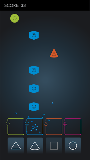 In the game you will find 4 objects, pyramid, cone, cube and a cricle. When you click play the game will start and objects will start falling from above. For every object there is a matching frame. When the object enters the frame a matching button must be clicked. So if pyramid enters a pyramid frame you must click on the pyramid button. Remember that button positions will shift and the movement speed of objects will increase. The goal is to reach the biggest score possible.