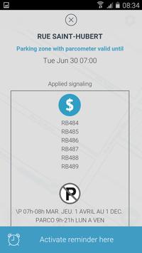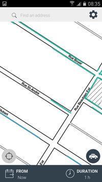 Simple P displays on a map, green and blue lines according to the parking signaling and notify the user before the next forbidden period.