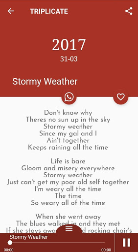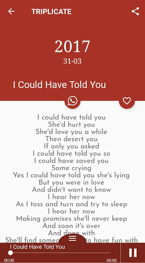 Lyrics displayed by the fan app are property of their respective owners and may only be used for educational purposes. Please support the artists and their companies. Buy the original CDs, MP3s, videos and merchandise. The sole purpose of this application is to delight the end user. This lyrics application is not an official and does not include audio or video because we respect a work from the owner of official recording. You can get the audio at the official store.