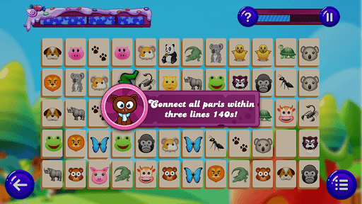 Then find another animal of the same type that has a path to the first emoji. If that path has no more than 3 lines, both emojis will disappear from the board. You are challenged to clear as many emojis as possible in the constrain of time.