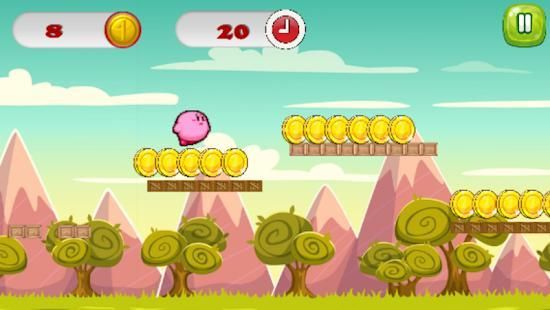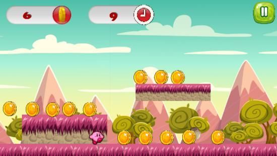 kirby Adventure Run and jump is a New free jumping game, Collect coins, avoid different obstacles to complete all levels.