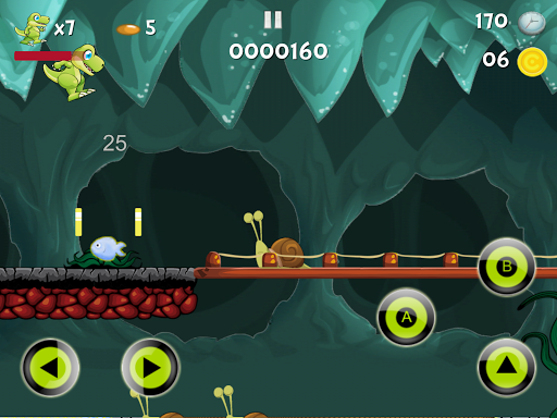 The game, which you can choose and play from 3 places, a long journey full of adventure is waiting for you. Whether at the foot of the mountains, in the mysterious darkness of the cave, or in the sky with Super Dino! You can jump and earn lots of gold, eat delicious fruits, overcome the difficult obstacles that you encounter and escape from the animals that approach you and level up.