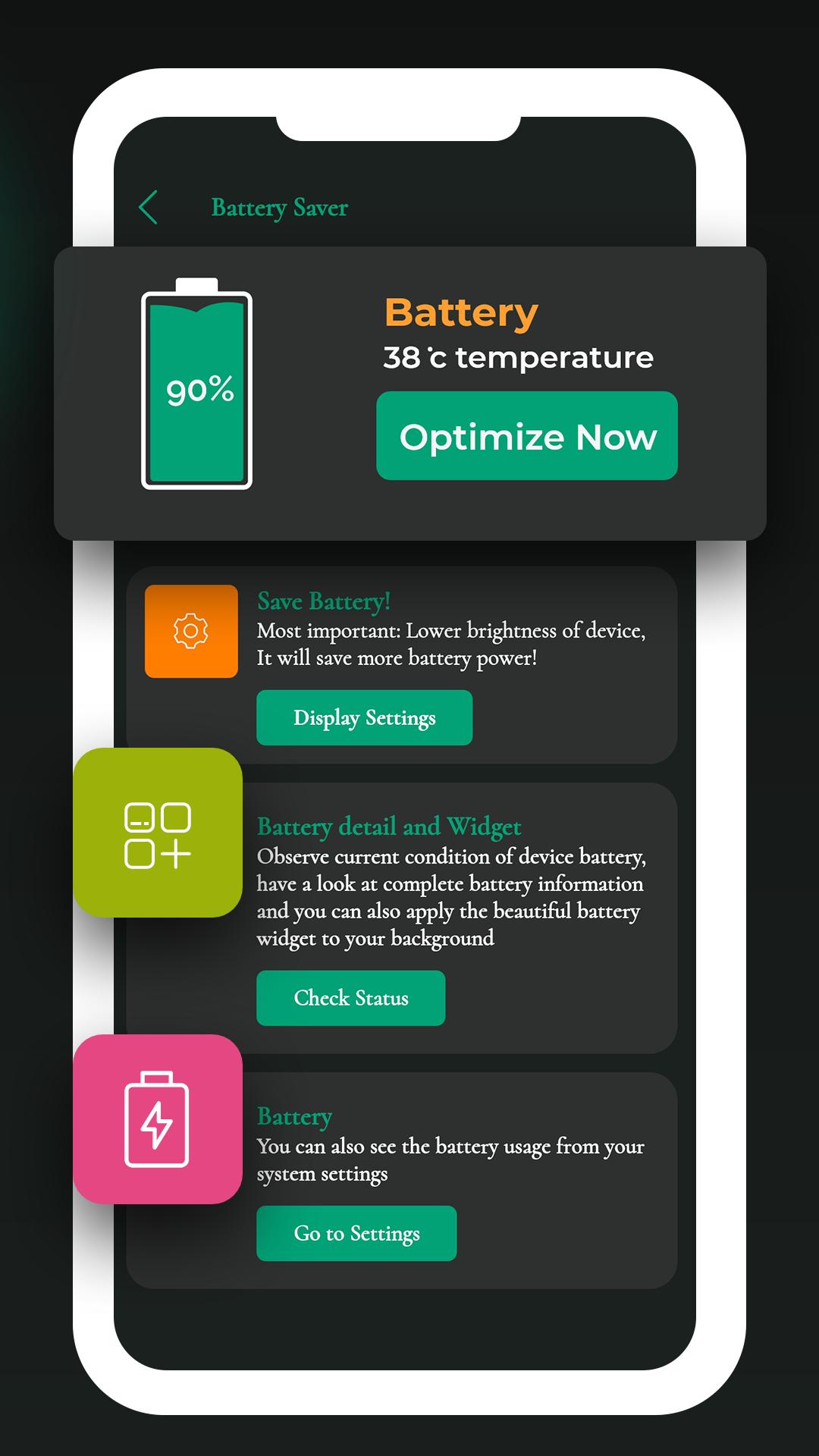 battery saving function that helps extend your battery life by finding apps and settings that drain power on your device. It also provides you with detailed battery information.