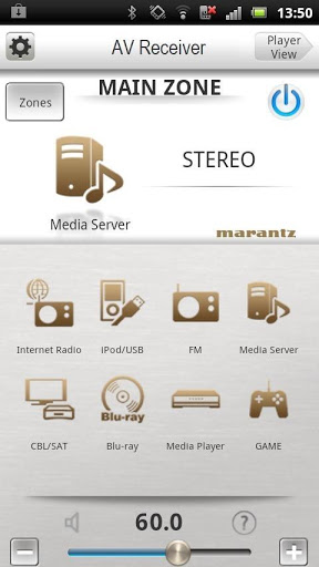 Adjust the basic functions of your Marantz product with power, volume, input and surround mode selection. Marantz disc player control is also available via Marantz Remote Terminals (D-BUS, RC-5) connection.
