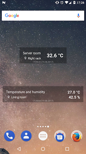 App features a simple widget where you can check the measured values immediately without the need to launch the application itself.