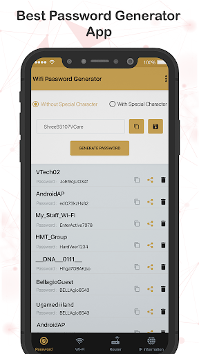 WiFi Şifre Anahtar Jeneratörü: Yönet, Mağaza uygulaması, basit GUI ile birlikte profesyonel bir tasarıma sahiptir. WiFi Şifre Anahtar Jeneratörü: Yönet, Mağaza Uygulaması Android Mobil ve Tablet Cihazlarının hemen hemen tüm ekran çözünürlükleri ile uyumludur.