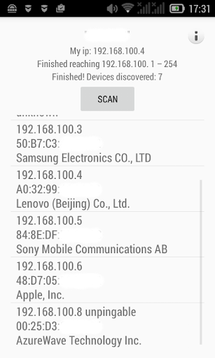 - WiFi ağına bağlı cihazları tarayın (1-254'e ulaşın, ardından ping sonucu)