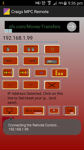 4. Providing everything is set up correctly, you simply type in the IP address of your computer. OR click on IP Detect and it will be set automatically.