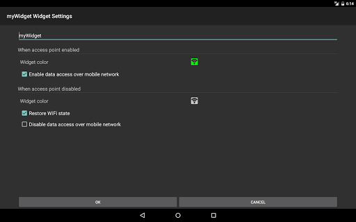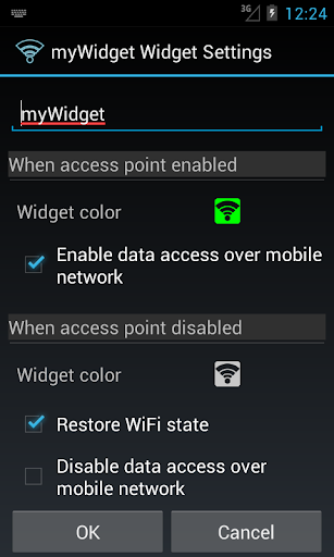 Widget allows you to enable/disable the portable WiFi hotspot (WiFi Tether) feature on your device with just one touch. Now you can easily share your Internet connection to other devices. Save your money!