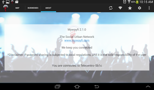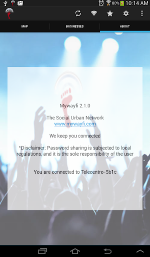 NOTE: Since this is a young app, the map of your city might look empty. Don't get discouraged as this does NOT mean you cannot connect! Quite the opposite: Our app will automatically (and progressively) DISCOVER those still unmapped hotspots and show their location. Also, though we wish we could promise otherwise, do expect few bugs and crashes. Please be patient, do NOT uninstall, and please report. We take your reports very seriously, and we work hard to make Mywayfi a great service as fast as possible. Your comments, doubts, questions and suggestions, as well as your participation, keeping the app running and sharing passwords, are critical to Mywayfi's success.