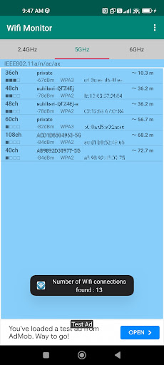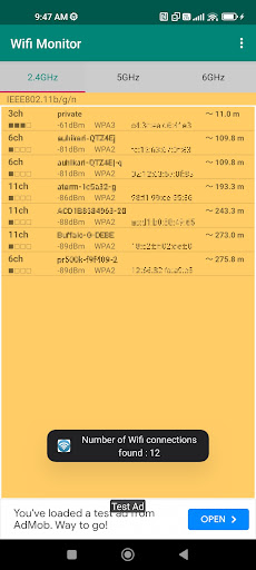 Çevredeki 2.4GHz ve 5GHz WiFi bantlarının sinyal durumunu ve cihaz destekliyorsa 6GHz bandını kontrol edebilirsiniz.