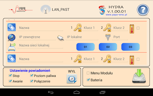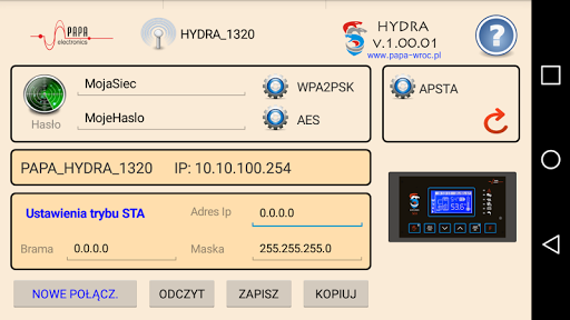 Dodatkowo, aplikacja umożliwia również zdalną konfigurację modułów WiFi w sterownikach Hydra.
