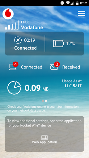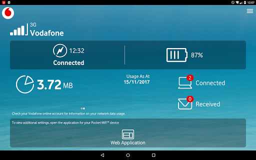 Vodafone Pocket WiFi® Monitor uygulaması, Cihaz ayarlarınıza hızlı ve kolay erişmenize izin vermenin yanı sıra, Pocket Wifi® bağlantınıza genel bir bakış sağlar.Uygulamanın kontrolünü kolaylaştırır: