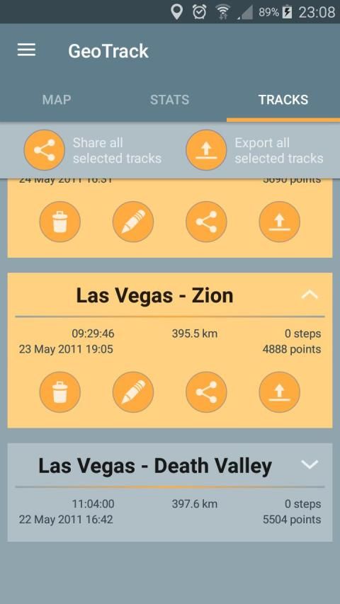 . Export / Share as GPX, KML or KMZ files (one or more trips per file).