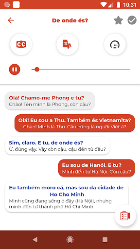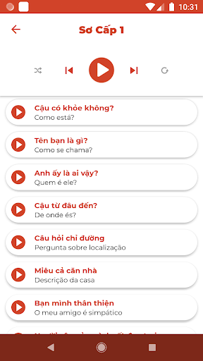 Thưởng thức việc thực hành tiếng Bồ Đào Nha ngay cả khi lái xe hoặc du lịch..., chỉ cần mở ứng dụng và bật chế độ danh sách phát.