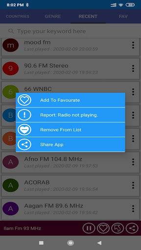 ♥ Quick swap/ Navigation between Favourite List, Countries List, Recent list, Genre List & More.