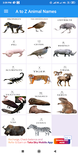 Ứng dụng chứa các hình ảnh động vật từ các thể loại như hình ảnh động vật biển, hình ảnh động vật hoang dã, hình ảnh động vật sở thú, hình ảnh động vật nhỏ, hình ảnh Của động vật nhỏ, động vật châu Phi, v.v.