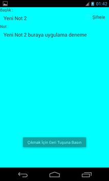 İstenilen notları şifresiz olarak, istenilen notlarınızı ise şifreleyerek ayrı bir bölümde tutabileceğiniz, çok kolay bir şekilde şifre özelliğini kaldırıp aktif edebileceğiniz not defteridir. Ayrıca arkaplan rengini, font rengini ve notları sıralama tipini de değiştirebilirsiniz.