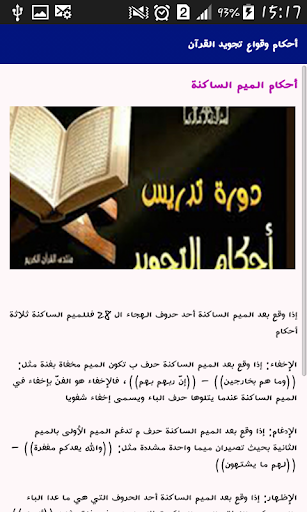نتقدم للجميع القرآن والتجويد بشكل صحيح سوف تعلم التجويد بالتطبيق اندرويد. وتتكون الدورة من الناحية النظرية ويمارس أيضا في الممارسة العملية. تريد أن تتعلم جيدا قواعد التجويد ثم سيكون من الأسهل بالنسبة لك. لدينا الموضوعات مقسمة إلى طبقات. كل درس اللمسات على موضوع مختلف