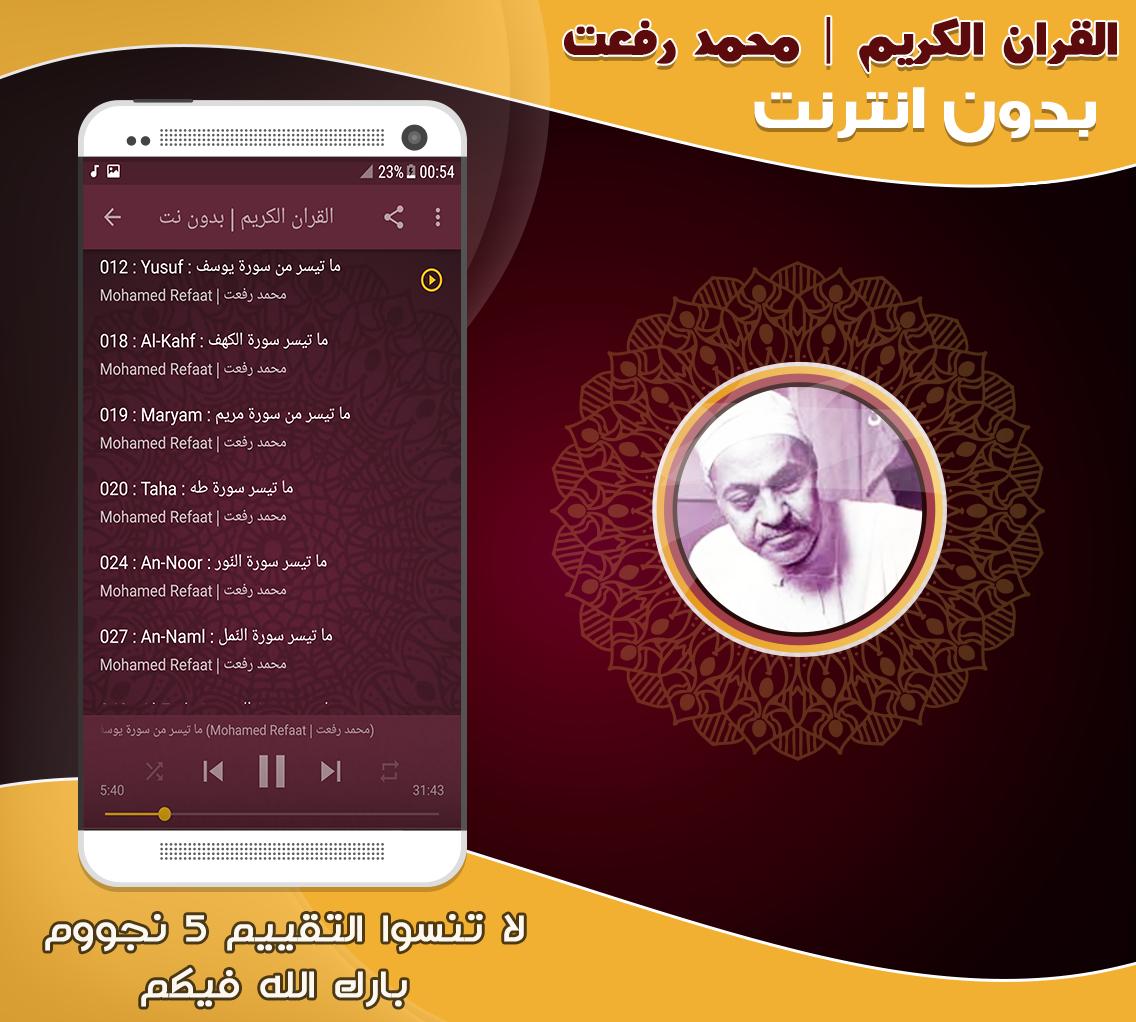 قران كريم بصوت محمد رفعت بدون نت - محمد رفعت بدون نت صوت رائع استمتع بسماع القران الكريم بدون انترنت
